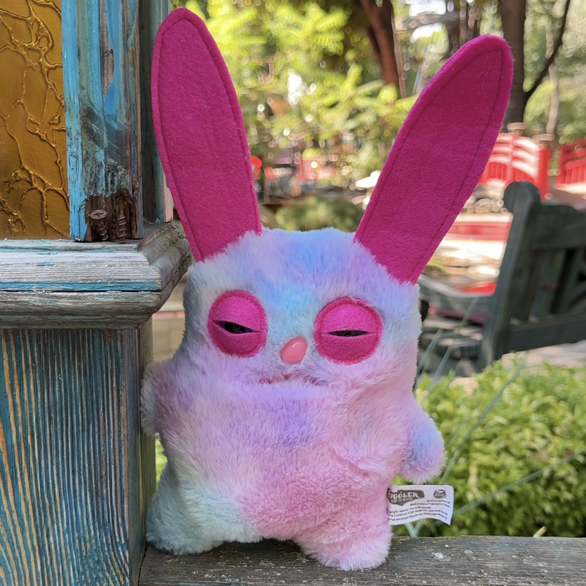 Ніжний зайчик з довгими вухами, виконаний у приємних райдужних відтінках. Його спокійний вигляд надихає на затишні ігри та фантастичні історії.